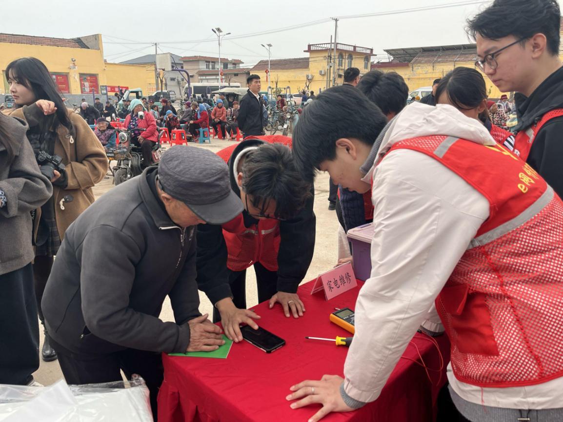 活动开始前,舞台周边便民服务摊位区同样人头攒动。家电维修、健康义诊、法律咨询、急救科普、垃圾分类等十余个摊位一字排开,志愿者们耐心细致地为村民提供服务,让群众“足不出村”就能解决生活中的小难题。
