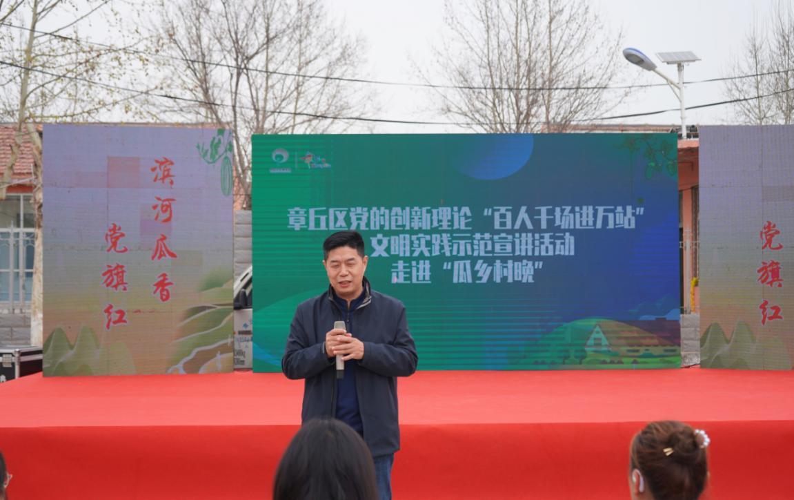 春风拂过绿意盎然的瓜田,一辆满载温情服务的“文明实践大篷车”驶入高官寨街道东安村广场。3月31日,章丘区党的创新理论“百人千场进万站”文明实践示范宣讲活动走进“瓜乡村晚”,为当地乡亲们送来了一场别开生面的“精神文化大餐”。