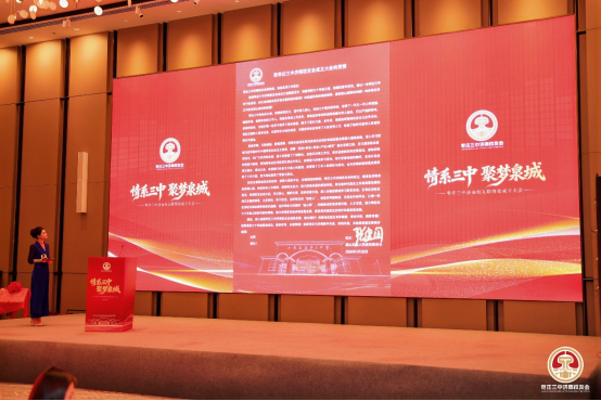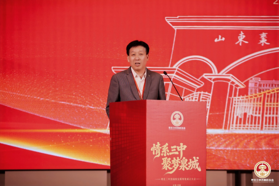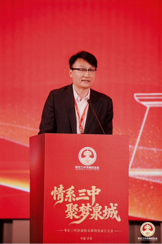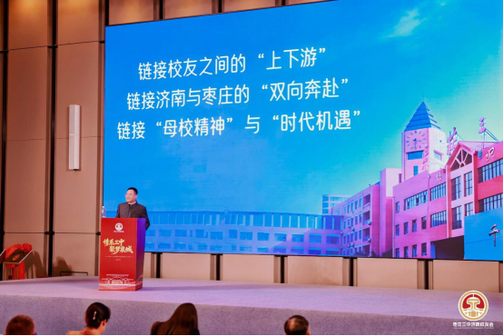 济南校友经济发展促进会副会长赵辉登台致辞,解读了济南“高校+校友+资金+产业 +城市”的校友经济发展模式,表达了与枣庄三中济南校友经济发展促进会深化合作、携手赋能城市发展的美好意愿。