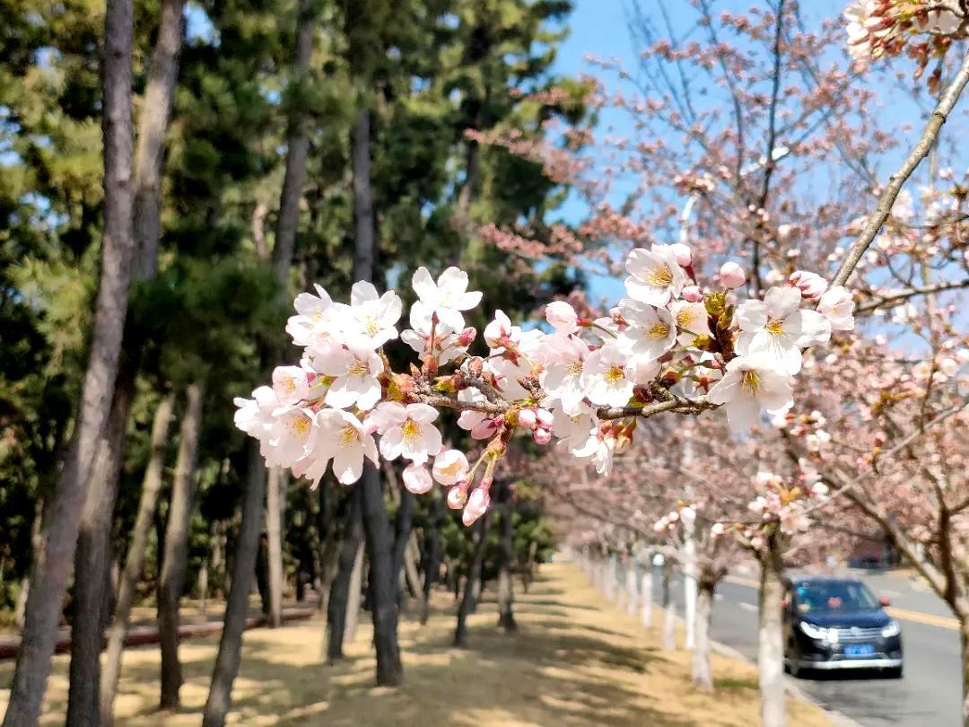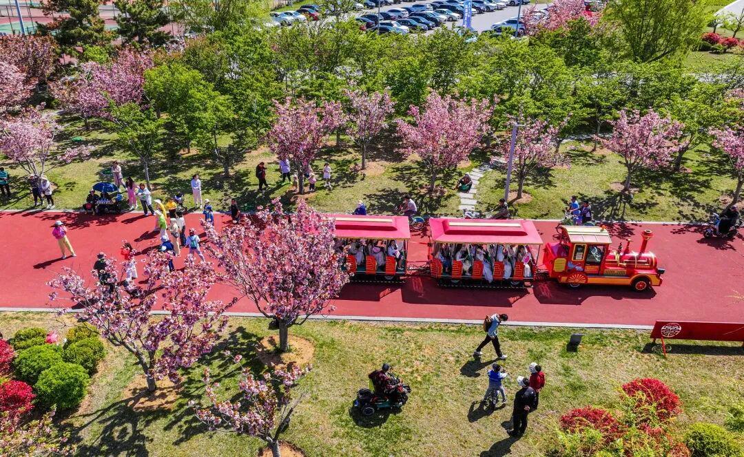 徜徉在威海市植物园,登上樱花观景台,亲身领略一场浪漫的樱花雨。不远处,玫红色的海棠花竞相绽放,朵朵含羞,远远望去宛若彤云密布,美不胜收。微风拂过,花枝轻颤,更显娇柔动人。