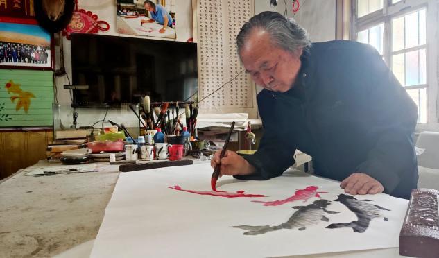 秦庄村民秦美轲深耕锦鲤绘画创作,跟随本土画师系统学习工笔锦鲤技法,参与公益培训与文创开发,带动更多乡亲拿起画笔。锦鲤画从民间爱好发展为特色文化产业,既守住乡土技艺,又为村集体经济与农户增收注入动能。