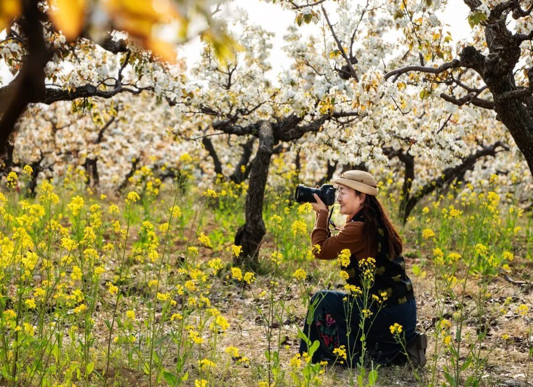 山亭芹沃百年老梨园里,千树万树梨花开得正盛。百年老树虬枝舒展,洁白的梨花缀满枝头,层层叠叠、素净淡雅,微风拂过,花瓣簌簌飘落,宛如漫天飞雪。与普通梨园不同,这里的百年梨树自带古朴韵味,梨花与沧桑枝干相映,既有春日的清新灵动,又藏岁月的厚重感,成为摄影爱好者和家庭游客的打卡热门地,游人或驻足留影,或静坐树下,静静感受梨花的温婉诗意。