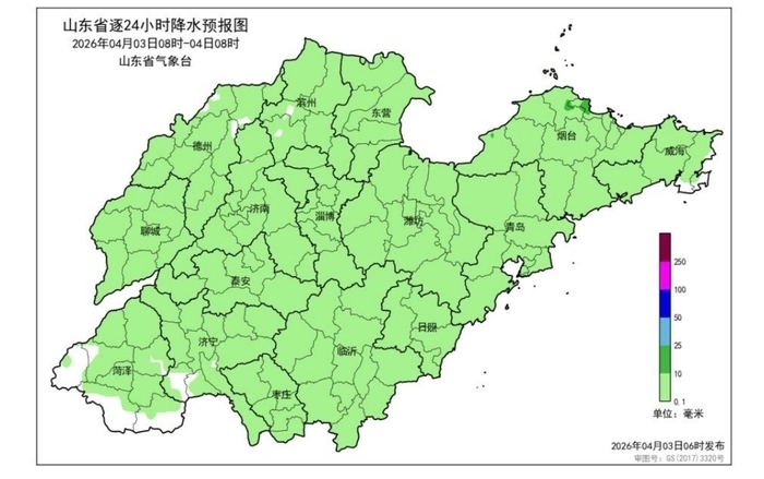 省气象台今晨预报:今天白天到夜间,菏泽、济宁、鲁西北和鲁中地区天气阴有雷雨或阵雨转晴,其他地区天气多云转阴有雷雨或阵雨。鲁西北、鲁中山区和半岛地区南风转北风5~6级阵风7~9级,其他地区南风4级阵风5~6级转北风4~5级阵风6~7级,雷雨地区雷雨时阵风9~11级。夜间最低气温:鲁中山区和半岛内陆地区4℃左右,有霜冻或轻霜冻;鲁南地区8℃左右,其他地区6℃左右。最高气温:济南、淄博、菏泽和鲁西北地区25℃左右,沿海地区16℃左右,其他地区22℃左右。