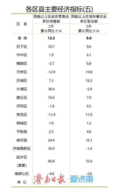 此外,1-2月,限额以上住宿和餐饮业单位营业额,同比增长8.6%。全市8.6%的增速下,起步区(直管)、天桥区、商河县排名前三。