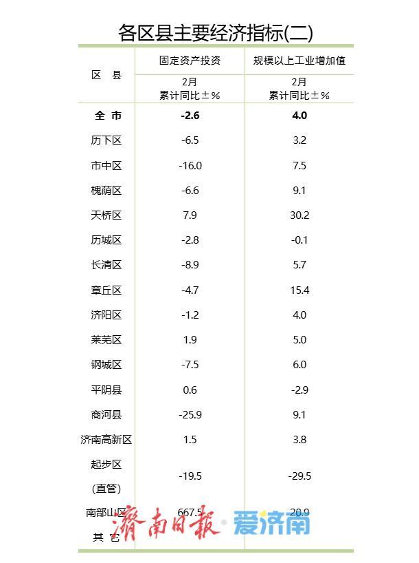 此外,莱芜区、济南高新区、平阴县分别以1.9%、1.5%、0.6%的增速,保持小幅正增长,新动能投资、产业项目、科创载体、民生工程等有序推进。