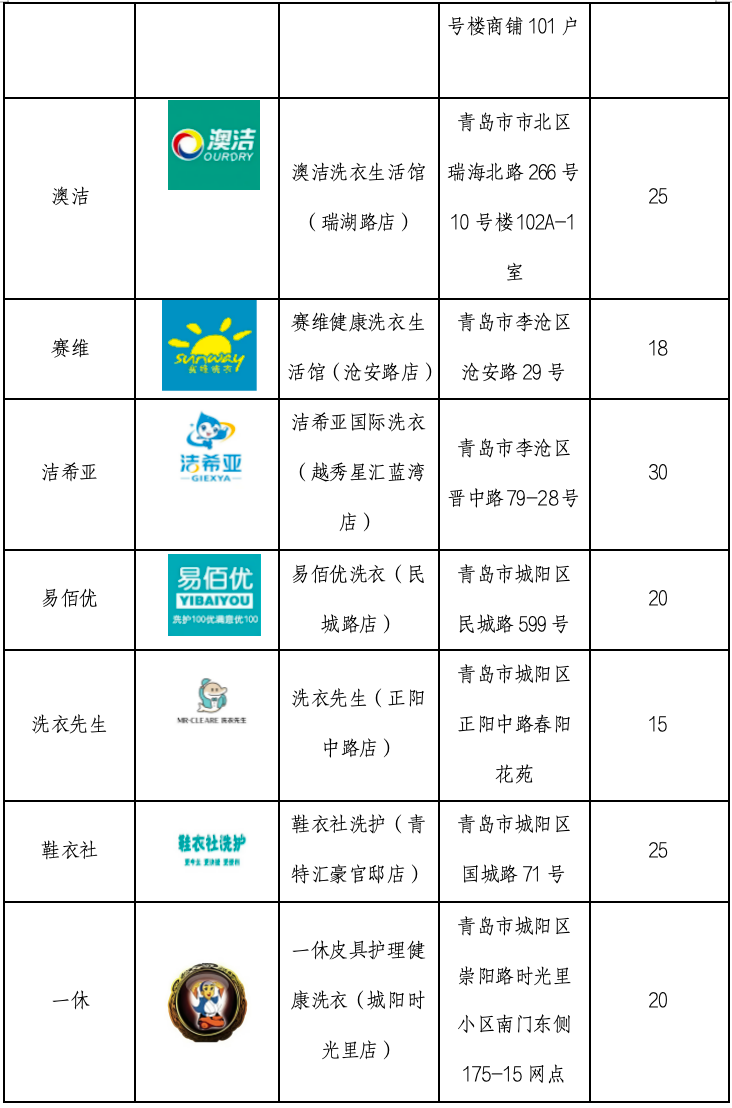 注:本表所列洗衣店,系按衣物送洗先后顺序排列