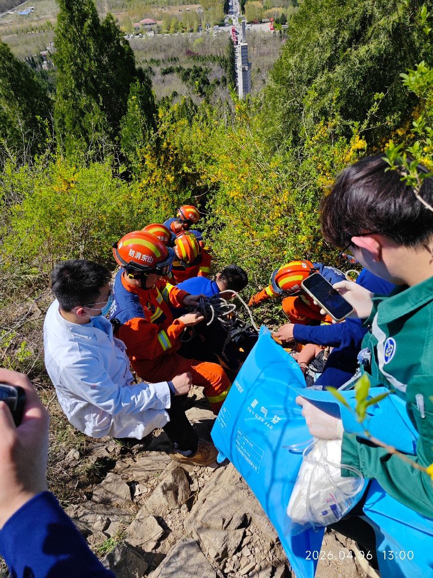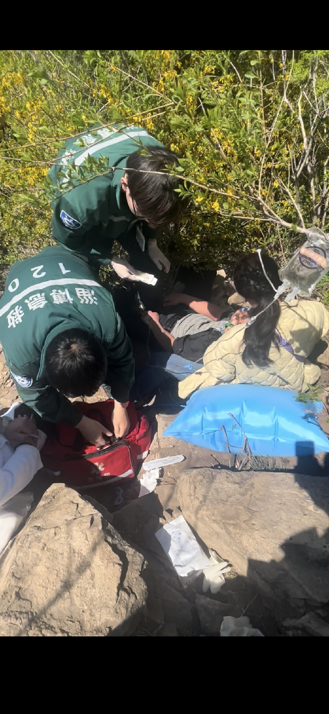 就在医护人员全力救治患者的同时,新的难题再次出现:患者所处位置山体陡峭、地形险峻,身处陡峭的山体之上,常规担架无法安全搬抬患者下山,转运工作陷入困境。为确保患者安全转运,医护人员第一时间联系119消防部门请求协同救援,同时持续监测患者心率、血压、呼吸等生命体征,根据病情变化及时调整用药剂量,始终坚守现场,筑牢患者生命防线,为后续转运奠定坚实基础。