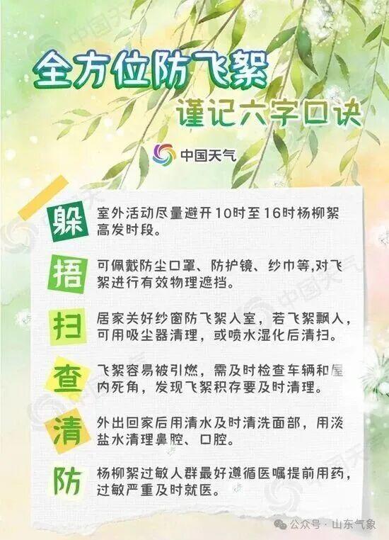 接下来,冷空气“存在感”较低,华北、黄淮多地晴天在线,暖意升级,这为杨柳絮果实裂壳飞絮提供了条件,多地已开始飘絮。公众外出需做好防护,牢记“躲、捂、扫、查、清、防”6字口诀。