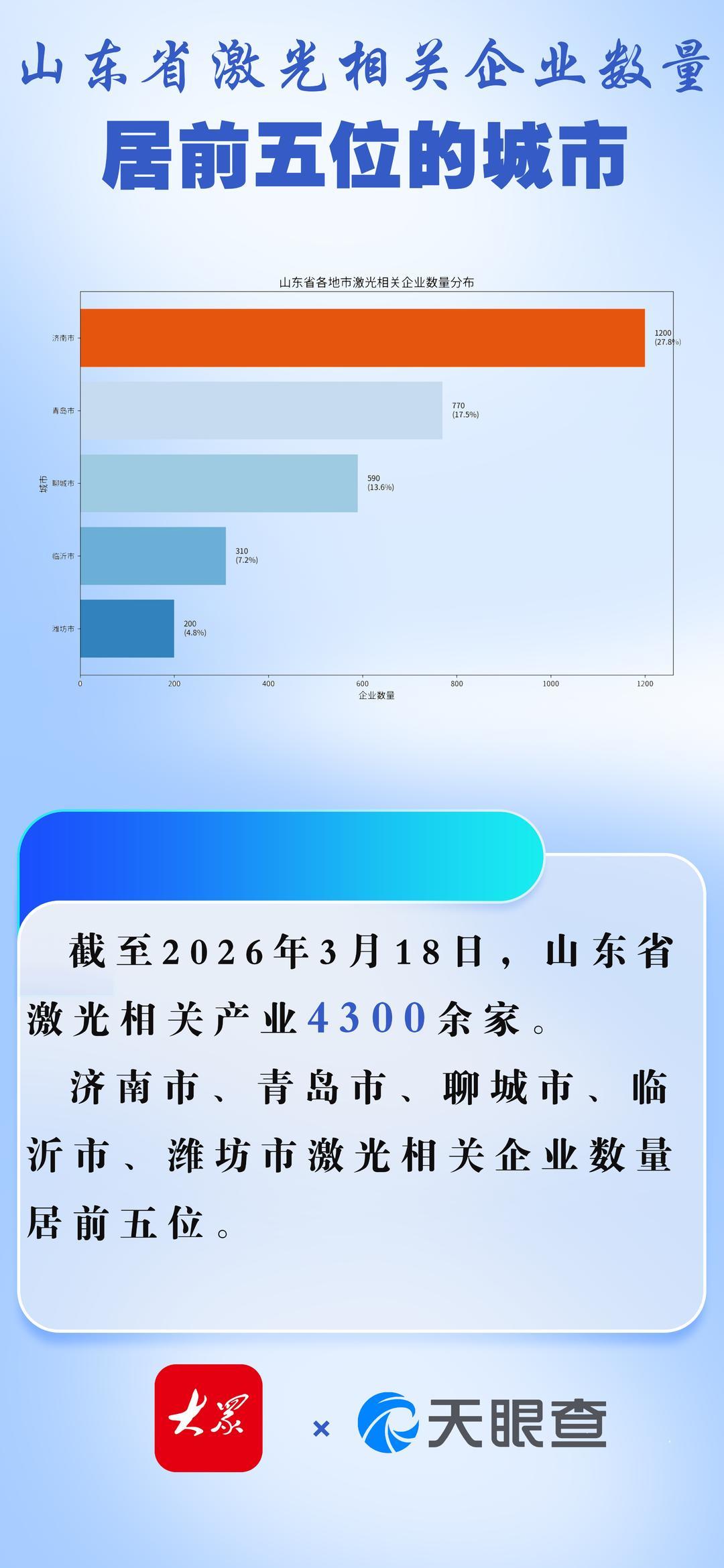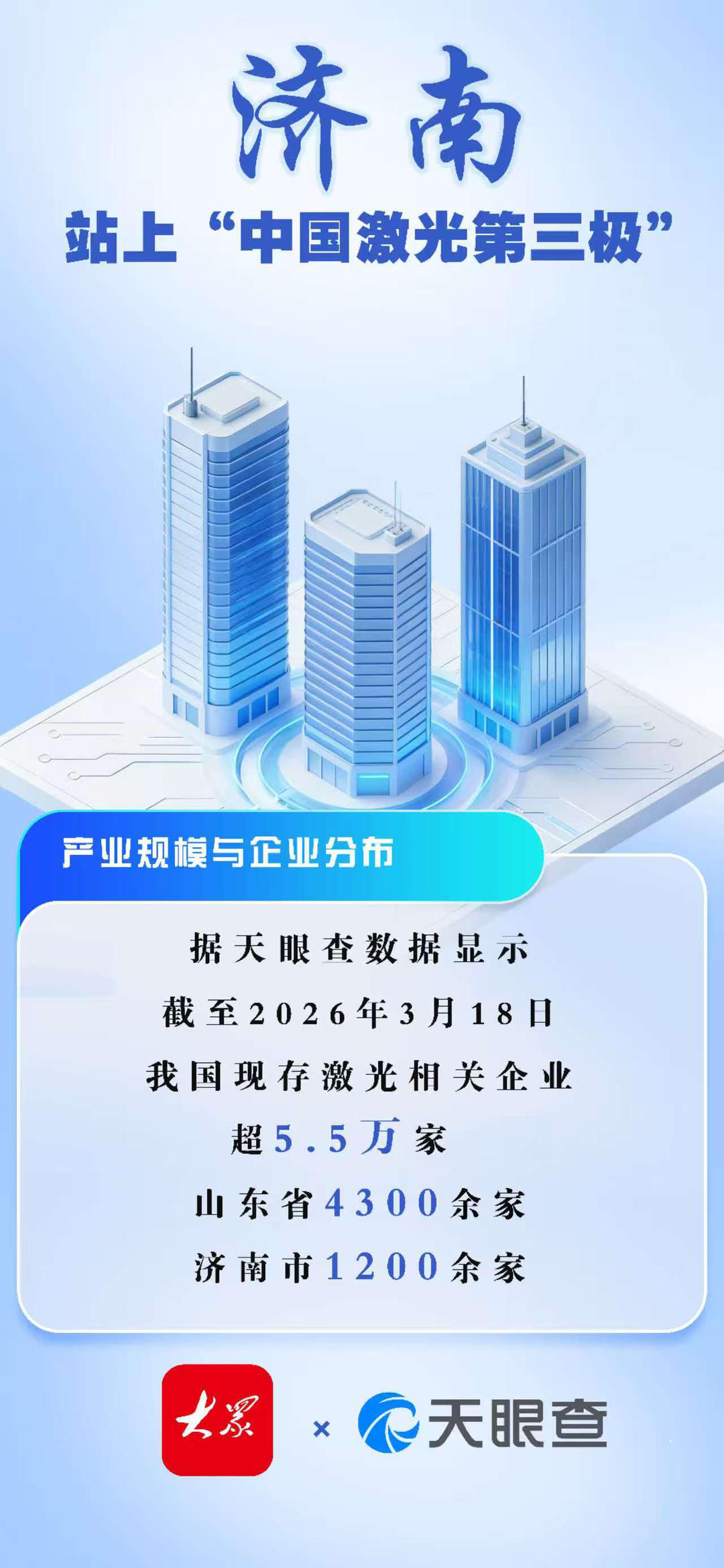 2026年4月9日,大众新闻联合天眼查发布《济南市激光产业数据分析报告》。本报告基于天眼查相关数据,旨在对济南市激光产业的发展现状、核心竞争力及未来趋势进行梳理。