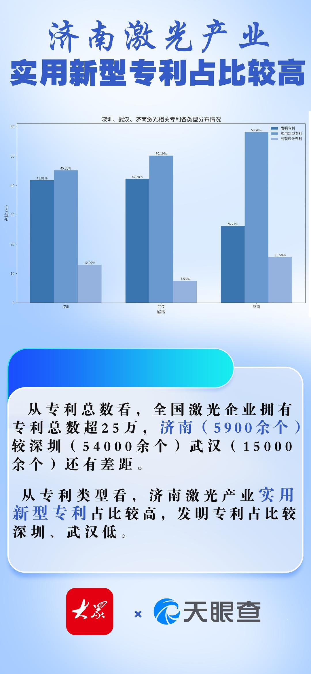 其次,创新基础待夯实。在创新资源密度上,尽管济南激光企业专利总数共计5900余个。作为对比,激光产业重镇深圳的专利总数高达54000余个,武汉也达到15000余个。这表明济南在创新成果的绝对数量上与传统强市仍有差距,需持续加大研发投入和高端人才集聚。
