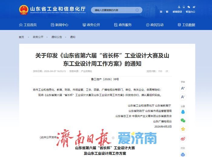 近日,省工业和信息化厅、省教育厅、省财政厅等七部门联合印发通知,正式启动山东省第六届“省长杯”工业设计大赛及山东工业设计周。