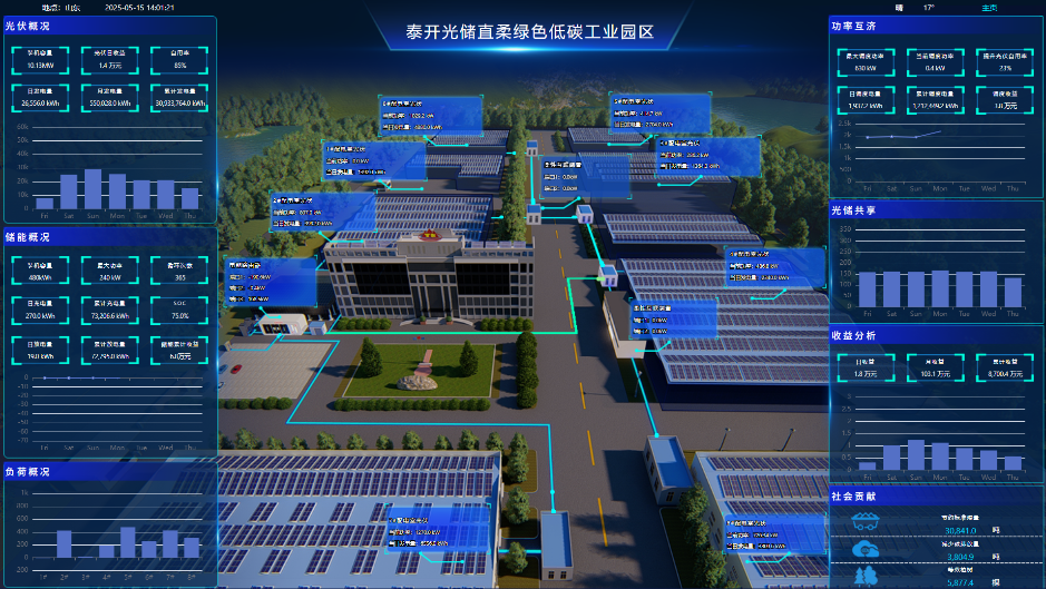 除了解决资源的“广域聚合”难题,山东还通过智慧微电网探索能源“局域自洽”的新路径。在泰开柔性微电网示范园区,光伏发的绿电白天优先供应生产办公,余电自动存入储能电站,待用电高峰时精准释放。