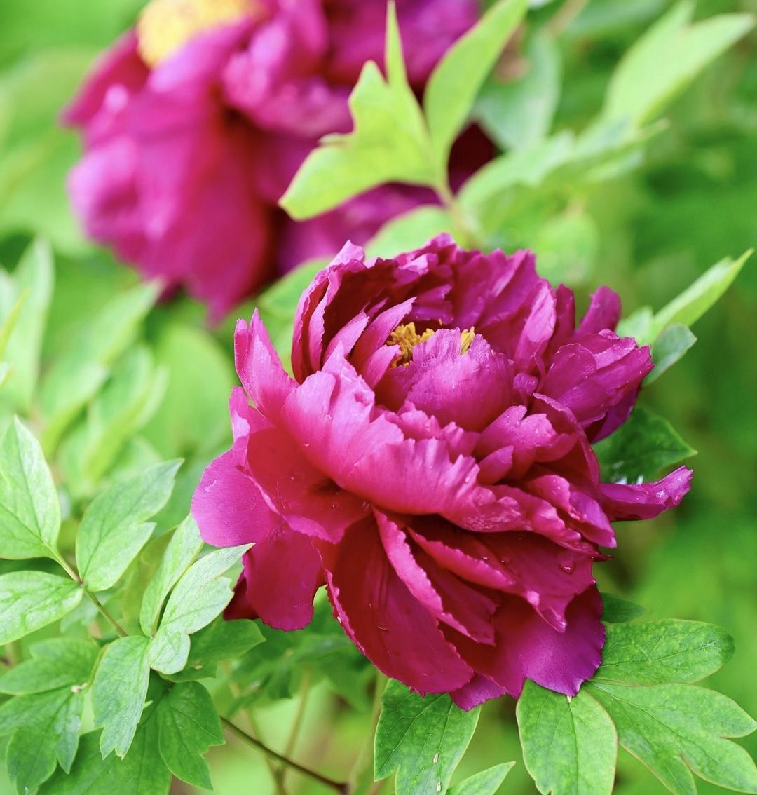 牡丹的叶子,宽大、厚实、边缘多裂。叶片通常更大、更厚,有明显的“雕刻感”,叶缘多为深裂,形状更复杂,整体看起来更“霸气”。