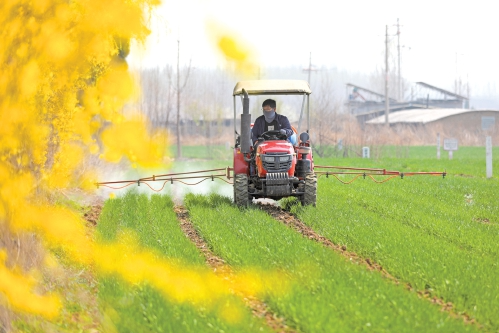春回大地,万物勃发,正是农事催人忙的关键时节。春耕、春管、春播、春灌,是全年粮食生产的第一仗,更能筑牢夏粮丰收、保障粮食安全的坚实根基。眼下的济南乡间田野,处处跃动着忙碌身影,农机轰鸣、农人奔忙、活水润田,一幅生机盎然的春日农耕画卷徐徐铺展。 图为春日麦田里,农户驾驶拖拉机开展植保作业。