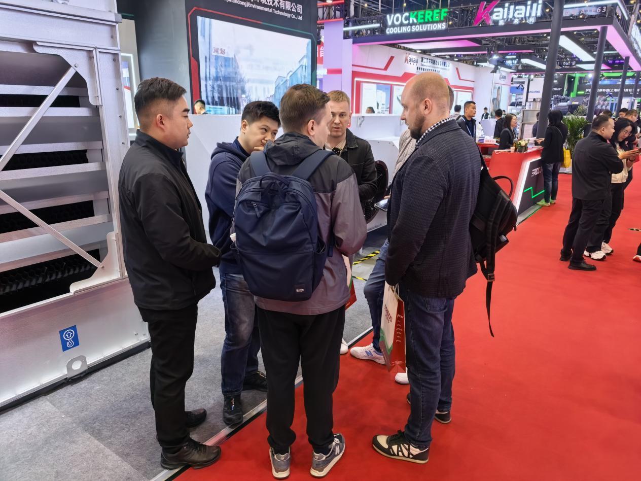 展会期间,弗莱多环境重点展出蒸发式冷凝器与空气冷却器两大明星产品。两款产品凭借高效节能、稳定可靠、工艺精湛等优势,精准契合制冷行业绿色低碳、高效智能的发展趋势,吸引众多国内外专业客商驻足咨询、深入洽谈。国内市场方面,成功对接河北、天津、黑龙江、吉林、辽宁等北方重点区域优质客户,进一步巩固华北、东北市场版图;国际市场上,获得韩国、俄罗斯等海外客户高度关注与合作意向,为企业 “走出去”、布局全球市场迈出坚实步伐。