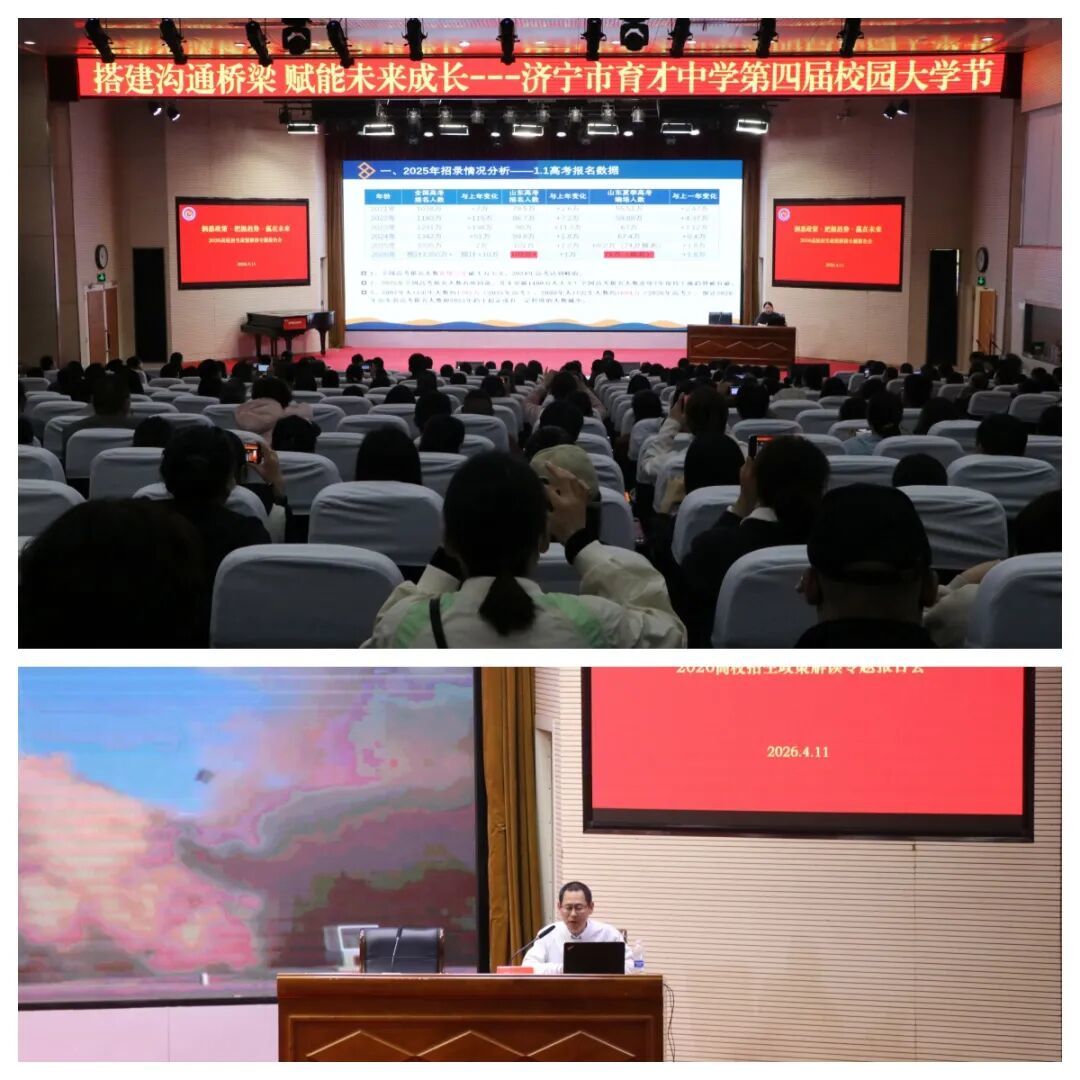 活动分两个阶段有序开展。第一阶段专场报告在学校一号报告厅举行,高校招生专家围绕招生政策解读、山东省招录数据分析、升学报考要点等内容开展专题讲解,内容详实、针对性强。现场家长认真聆听、仔细记录,纷纷表示讲座干货满满,切实解决了诸多升学困惑。