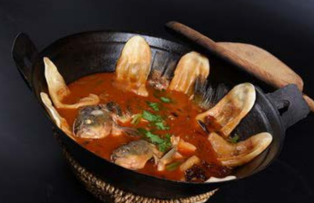 “老鳖㸆河涯”是流行于微山湖及运河沿岸的一道经典地锅菜。对于济宁人而言,这五个字不仅是一道菜,更是一幅生动的风俗画:一口铁锅炖着湖中鲜鱼,锅边贴满面饼,因面饼形似河边的鳖群,故得此名。