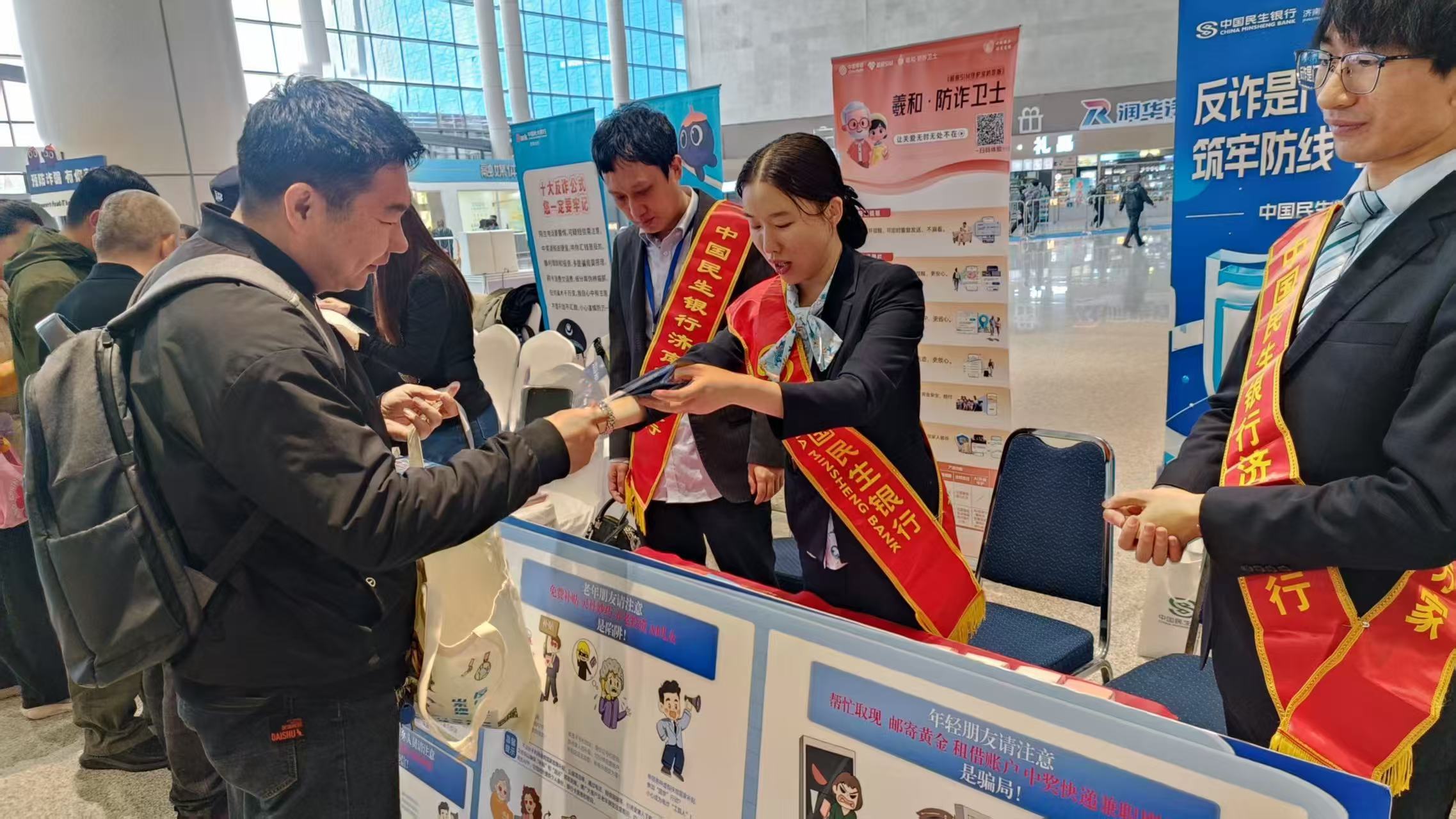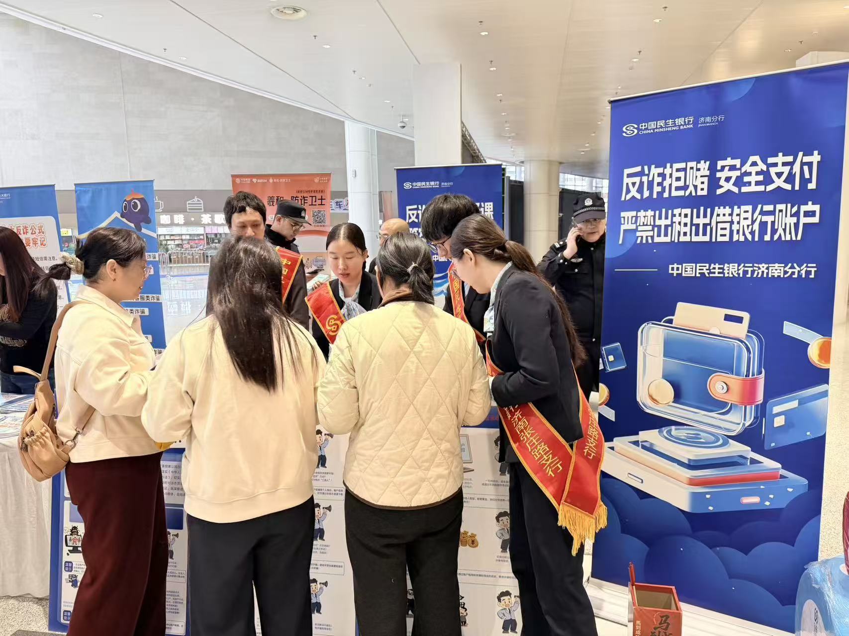 为进一步提升群众反诈拒赌意识,守护群众资金安全,近日,在山东省公安厅、中国人民银行山东省分行统一组织下,民生银行济南泺源支行走进山东国际会展中心,开展“反诈拒赌 安全支付 严禁出租出借银行账户”主题宣传活动,切实将金融安全知识送到群众身边。