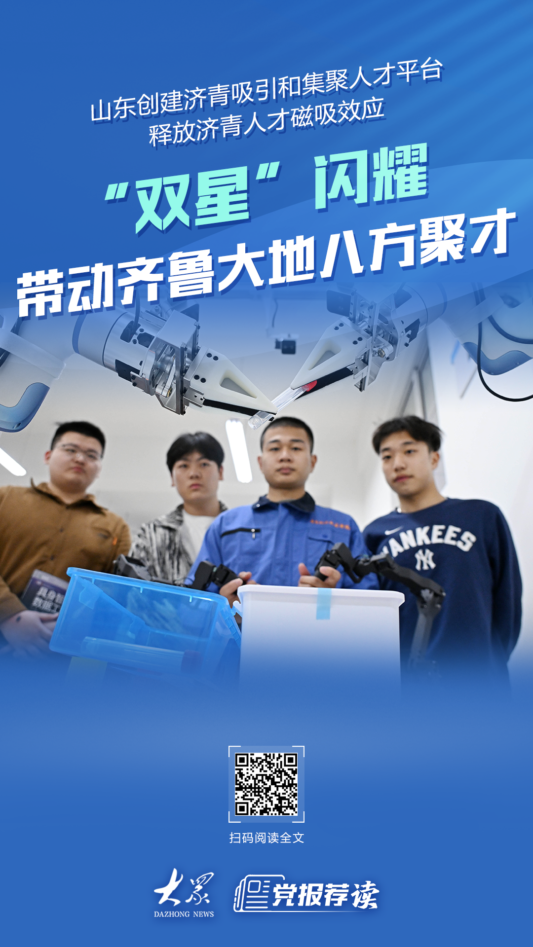 近年来,山东积极融入国家人才发展战略布局,全力创建济青吸引和集聚人才平台,优化人才生态环境、壮大战略人才力量,在先进制造、海洋、现代农业三大领域形成创新能力领先、人才资源富集、产业基础雄厚的综合优势。即日起,大众日报推出“打造全国重要人才中心和创新高地”专栏,全面展现山东广纳天下英才的好做法好经验,深入讲述人才与山东彼此成就、双向奔赴的生动故事。敬请关注。