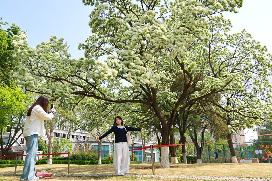 近日,聊城公园内的流苏树迎来盛花期。满树繁花洁白如雪,细碎花瓣层层舒展,花蕊间点缀嫩黄,素雅清新、香气清幽,为春日的公园增添一抹诗意,不少市民游客慕名而来,在树下驻足观赏、拍照打卡。