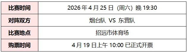 2026 齐鲁足球超级联赛・烟台赛区主场首战将于 4 月 25 日在招远燃情开赛!目前主场门票正式开启预售,购票即赠观赛大礼包,凭票根还可享受旅游、住宿等多项专属优惠。