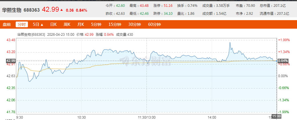 市场表现方面,2025年报披露后次日,华熙生物股价报收42.99元/股,上涨0.84%。