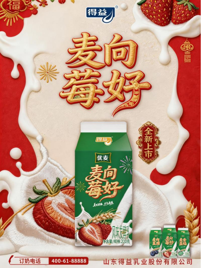目前,得益乳业青苹抹绿奶皮子酸奶与优麦草莓燕麦酸奶已全面上市,消费者可通过得益新鲜订小程序、京东、天猫、抖音、小红书等官方线上渠道一键订奶或购买,也可前往线下门店、各大商超选购。未来,得益乳业将继续坚守产品高品质,持续创新研发,推出更多契合消费者需求的高品质低温乳品,助力国民营养升级,让更多人喝到真正的鲜活好奶!