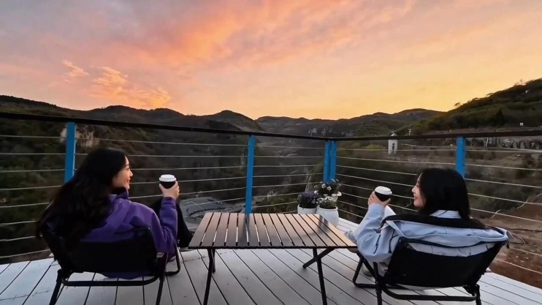 在崖上咖啡,等太阳爬下山崖,灯光和月光点亮古村的飞檐翘角,一场充满异域风情的幻境在柿岩古村铺展。