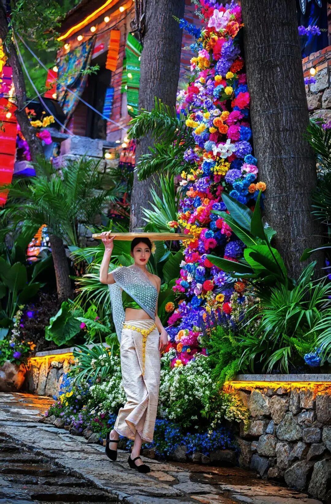 苗疆少女、傣家阿妹等NPC穿行巷陌,互动妙趣横生;民族摇滚乐队动感开场,灯光和花香铺满每一条小巷……
