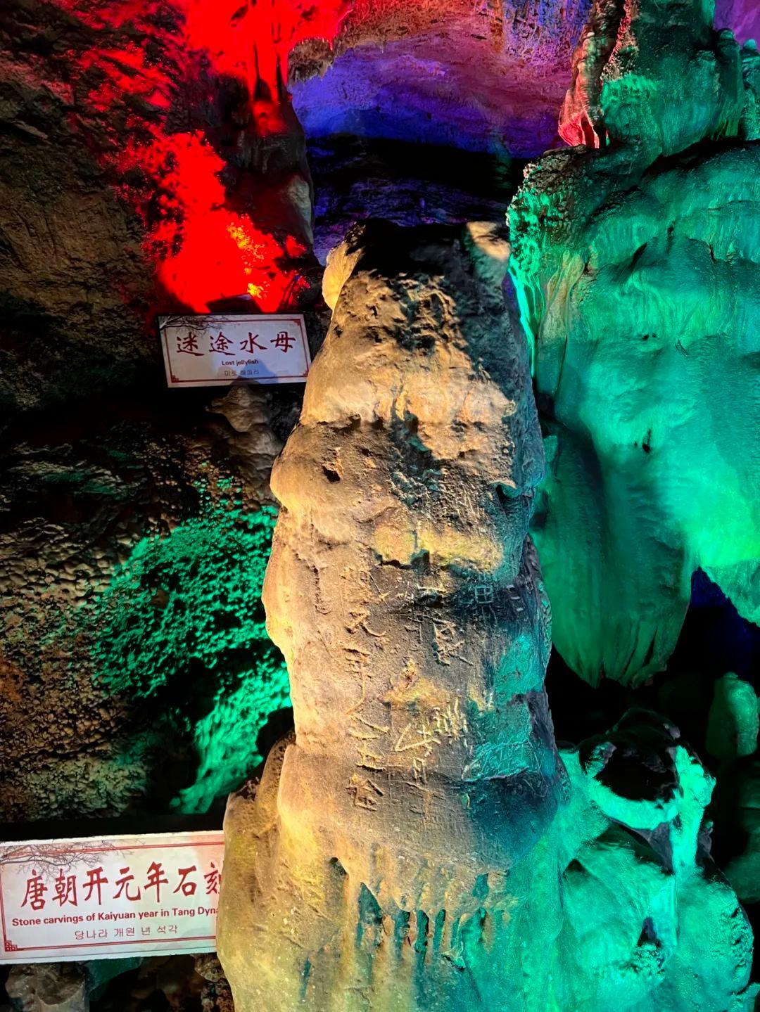 洞内还留存有唐代开元年间的摩崖石刻,真实再现了1300年前盛唐文化的一个侧面,充分展示出开元溶洞博大深沉的文化内涵。