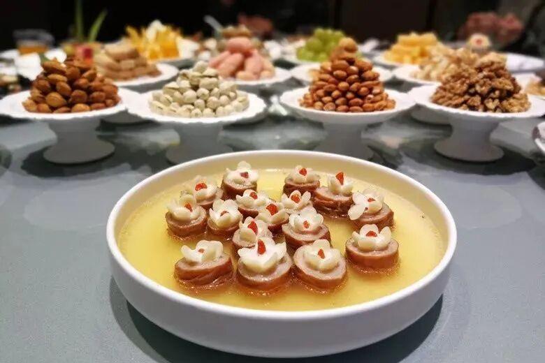 四四席不仅是一桌色香味俱全的美食,更富有仪式感和观赏感。一桌四四席共有四平盘、四大件、四行件和四饭菜16个菜。蕴含“四红四喜”“四季平安”等吉祥寓意,是鲁中地区顶级的餐饮礼仪。
