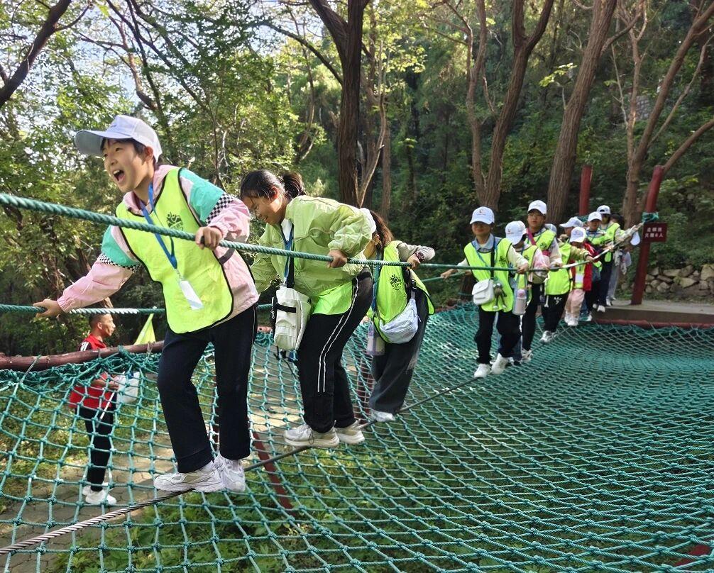 在森林乐园内,独木桥、滑索、走钢丝、滑草等各种无动力游乐项目,是小朋友们的快乐园地。带娃出行,在山野林间,拥抱最纯粹的快乐。