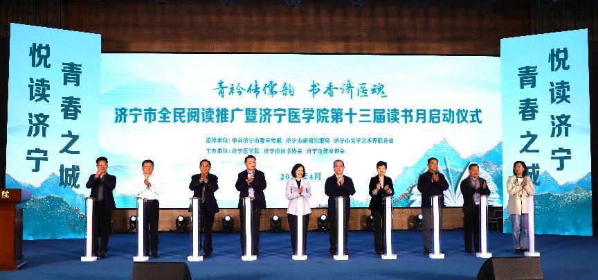 4月21日上午,济宁市全民阅读推广暨济宁医学院第十三届读书月活动启动仪式在济宁医学院隆重举行。本次活动由中共济宁市委宣传部、济宁市新闻出版局、济宁市文学艺术界联合会指导,济宁医学院、济宁市读书协会、济宁市作家协会共同主办,主题为“青衿传儒韵·书香济医魂”。