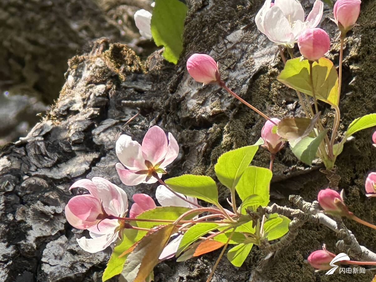 齐鲁网·闪电新闻讯 柔粉缀枝,芳姿嫣然。泰山后石坞海棠花开了!清风拂过 ,暗香浮动。山林藏温婉,繁花映山岚,来后石坞看海棠吧,邂逅泰山深处独有的春日浪漫。