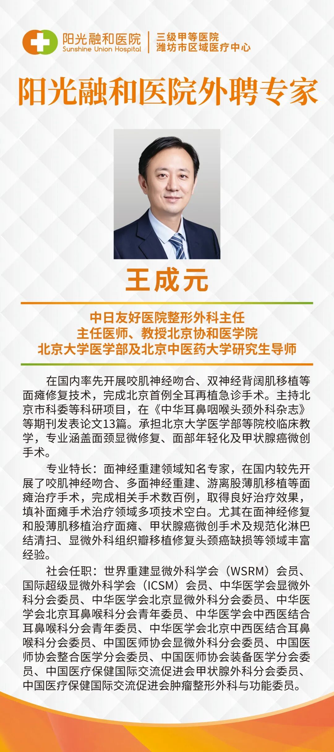王成元教授:中日友好医院整形外科主任、主任医师、教授、医学博士、研究生导师。