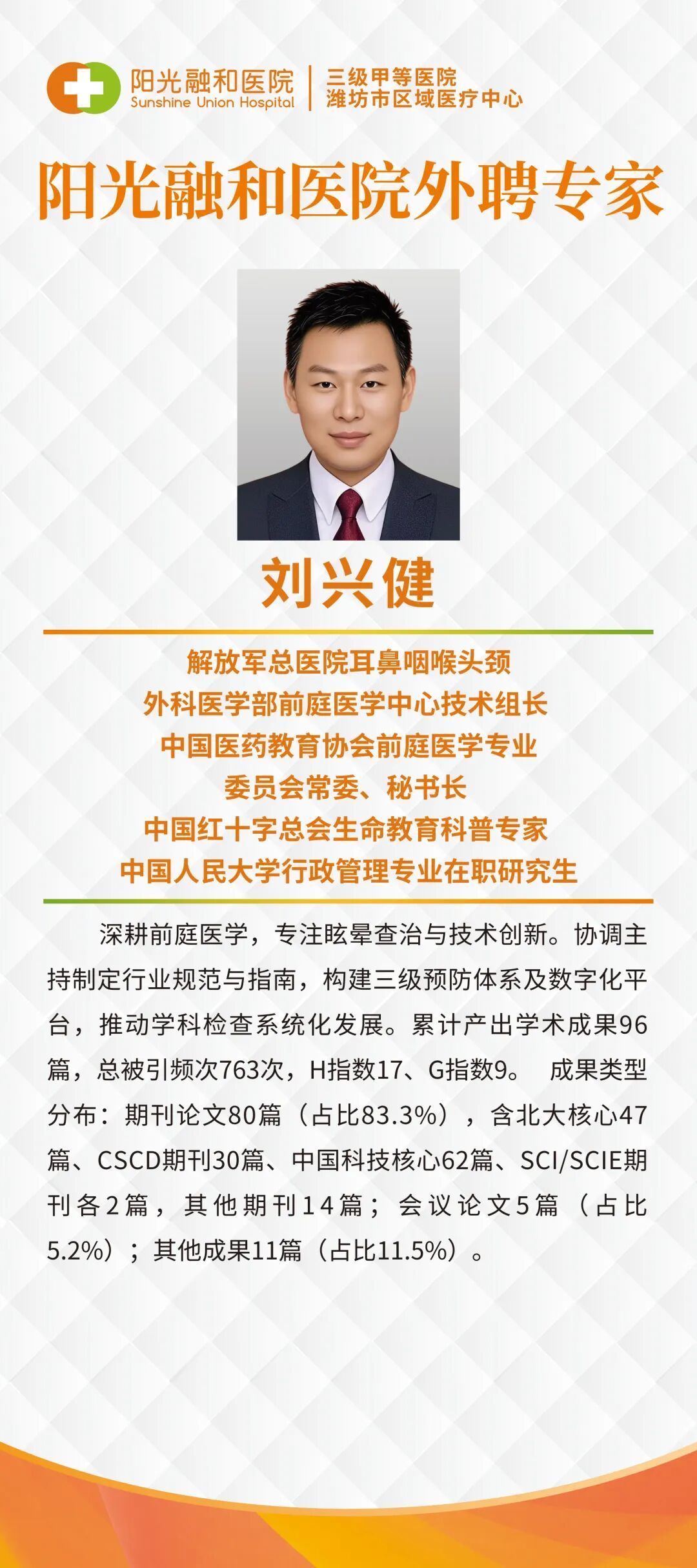刘兴健教授:解放军总医院耳鼻咽喉头颈外科医学部前庭医学中心技术组长、中国医药教育协会前庭医学专业委员会秘书长。