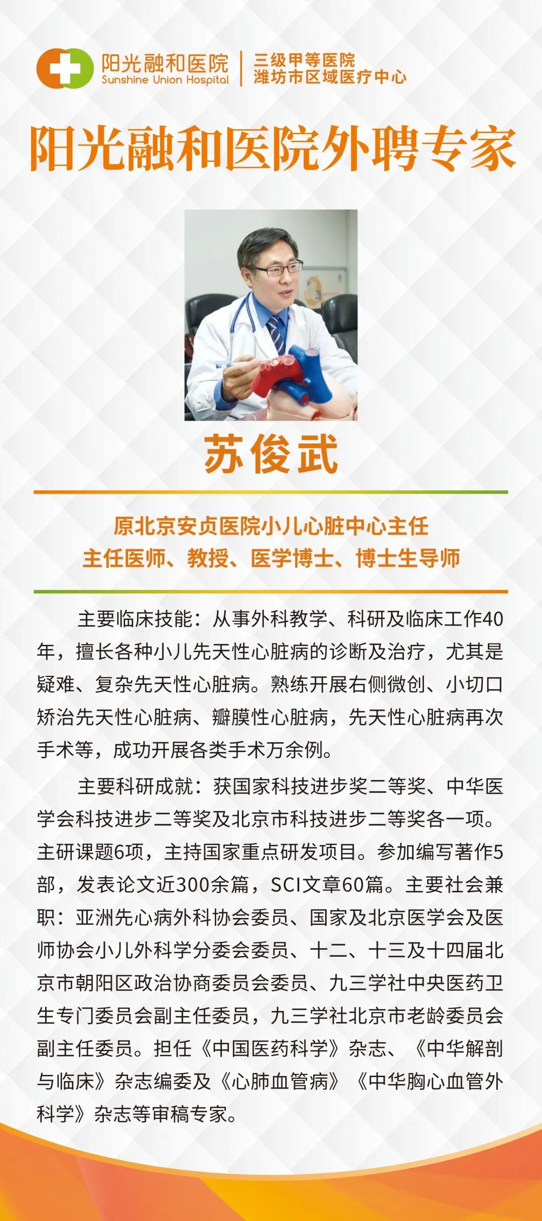 苏俊武教授:原北京安贞医院小儿心脏中心主任,主任医师、教授、医学博士、博士生导师。