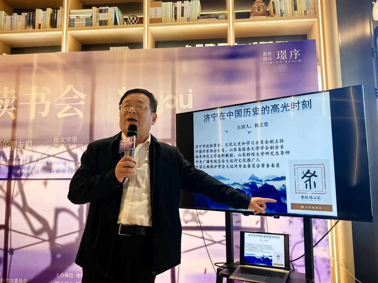 在首场读书分享会上,知名作家杨义堂讲述了济宁历史上的高光时刻。杨义堂以文字为桥,穿越千年时空,与书友们探寻济宁的历史根脉与文化荣光。