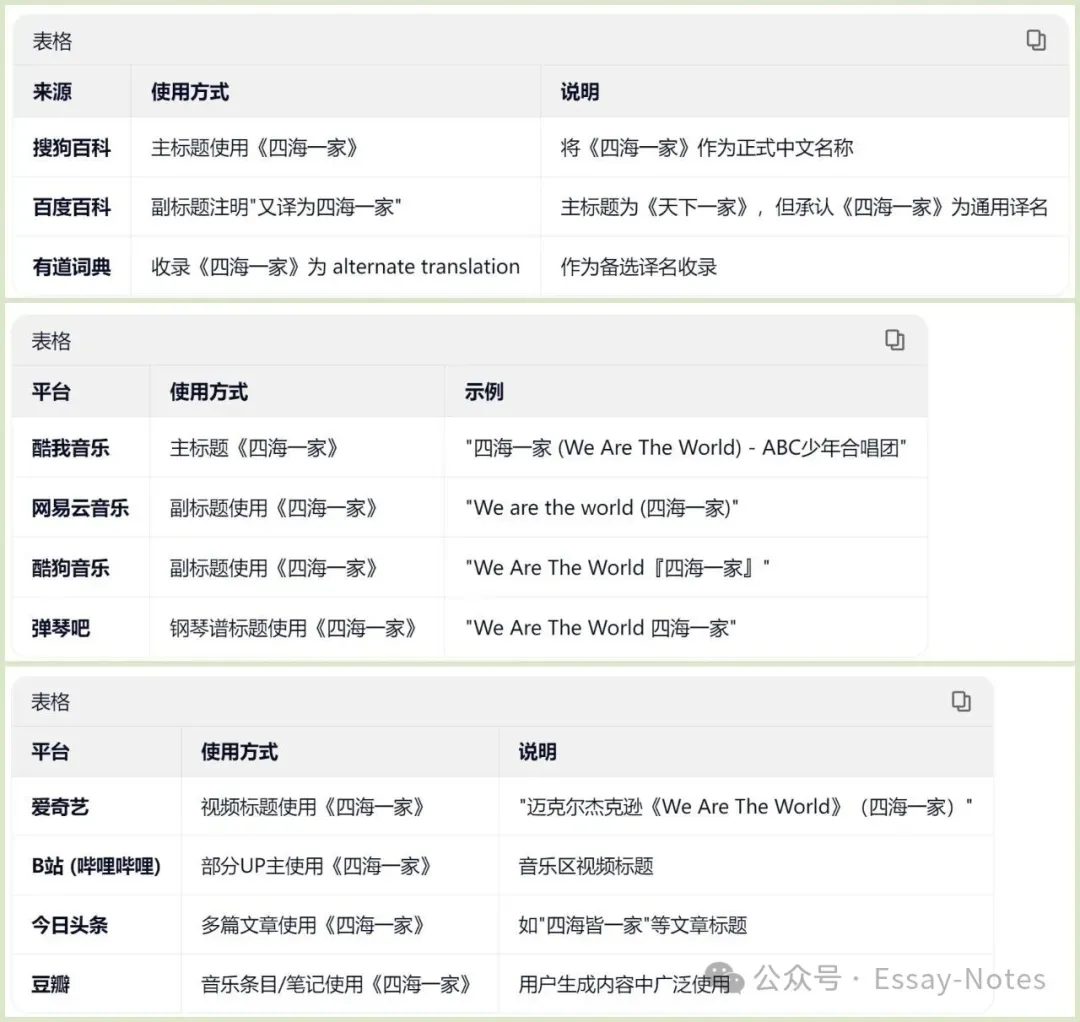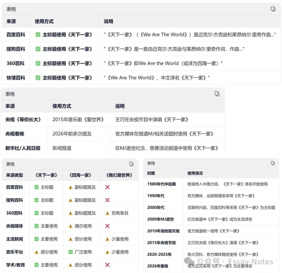 今年春晚的流量,无论是把歌名带成了《我们是世界》还是《世界义乌中国年》,但都无法改变自《We Are the World》问世后,简体中文译名一直是《天下一家》或《四海一家》的过往。 趁着平台还没有更新,请千问和元宝帮忙,快照了一些资料下来,供大家参照。
