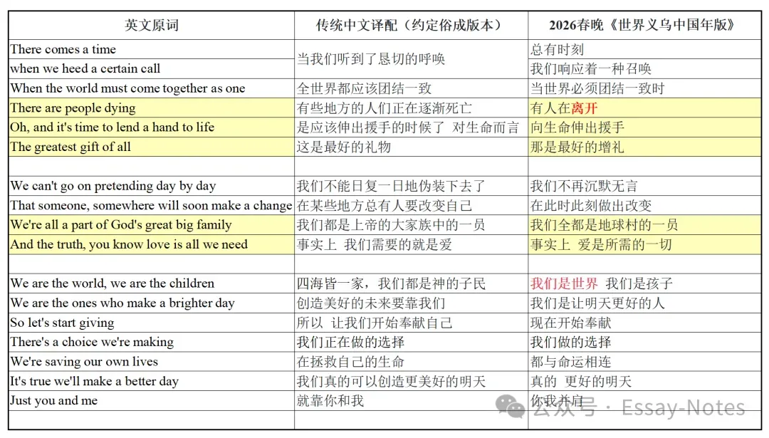 也对照了一下「约定俗成的简体中文歌词」与「26马年春晚中文歌词」。其中,黄底色部分直接中文演唱,权当是二次创作;但Richie是原歌词演唱,字幕就纯属译文了。是否信达雅、 是否曲解本意,全凭受众的自行判断。