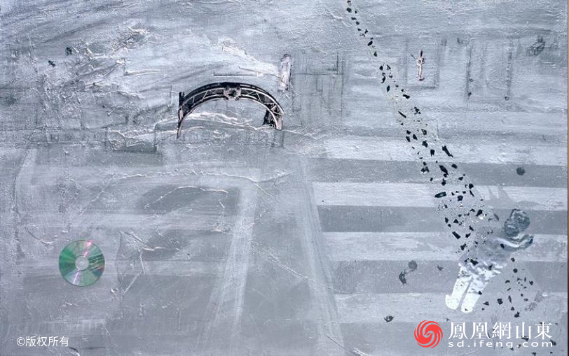 2007年,我把由我开创的这种画面全部运用诸多金属银色元素并置表现,对不同空间材质等银色元素做画面“冷”与“硬”的精神性做直观的视觉传达的“冷银”观念图式,与附着于表层之上的由不规则碎片构成的三角形光束以及人形身影等其他始终贯穿画面其中的“冷银”观念绘画符号的“冷银”绘画形式及语言,定义为“冷银主义”绘画。“冷”代表了这一绘画的精神性,“银”则是指运用的银色元素。